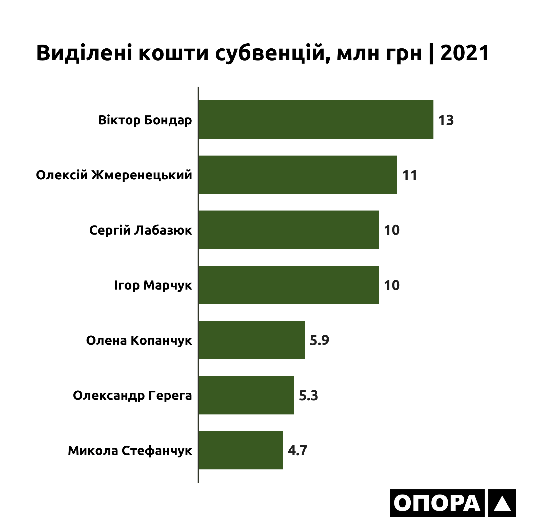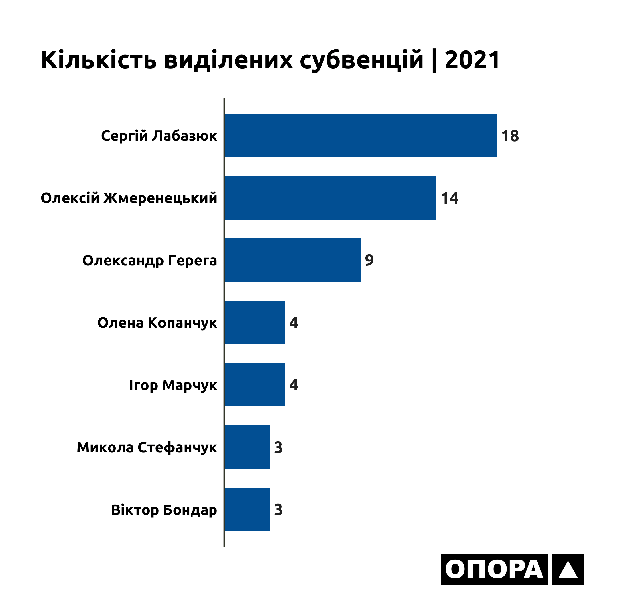 Що ж до кількості й обсягів субвенцій на Хмельниччину, то за першим показником лідирує 188 виборчий округ, представлений у Верховній Раді Сергієм Лабазюком (депутатська група «Партія «За майбутнє»). Загалом на цей округ Кабмін виділив 18 субвенцій. За загальною сумою виділених грошей першість тримає виборчий округ 191, який до ВРУ делегував Віктора Бондаря (також депутатська група «Партія «За майбутнє»). На цей округ уряд спрямував 13 мільйонів гривень.